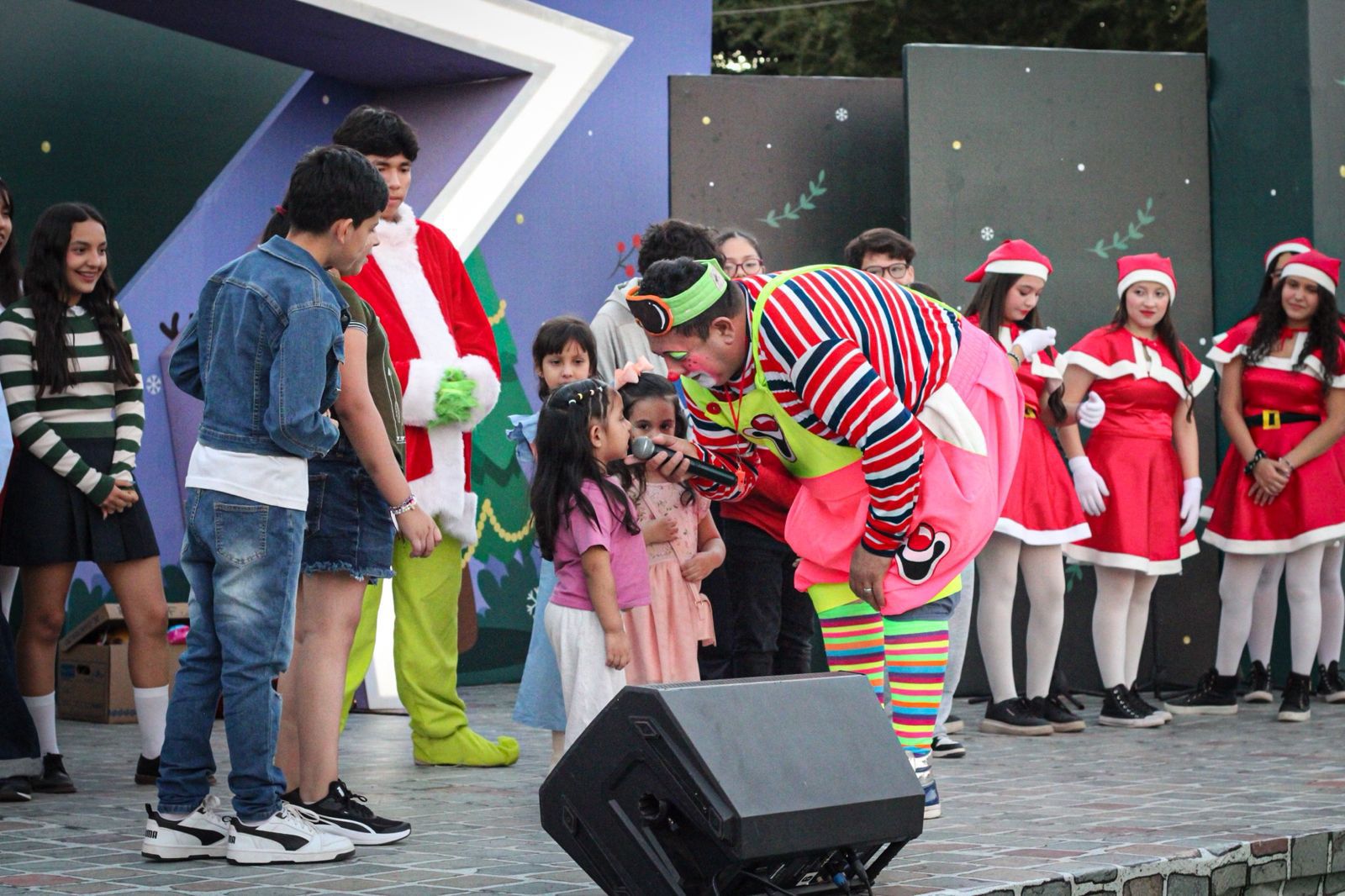 Desde las 5:00 de la tarde, el ambiente se encendió con las ocurrencias del payaso Pulgarcito, quien hizo correr, jugar y reír a niñas, niños y adultos por igual, convirtiendo cada dinámica en un momento inolvidable lleno de carcajadas y premios.