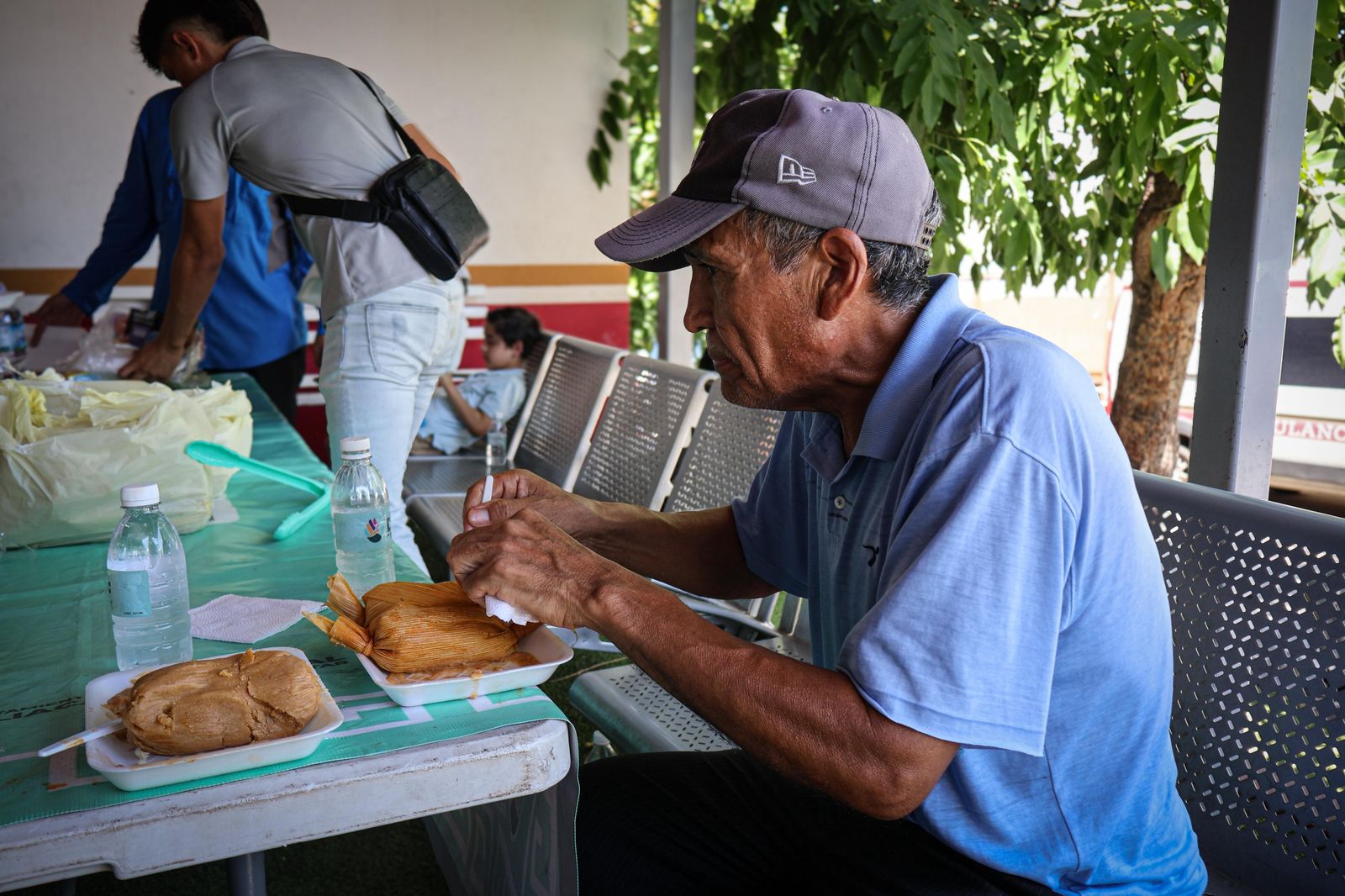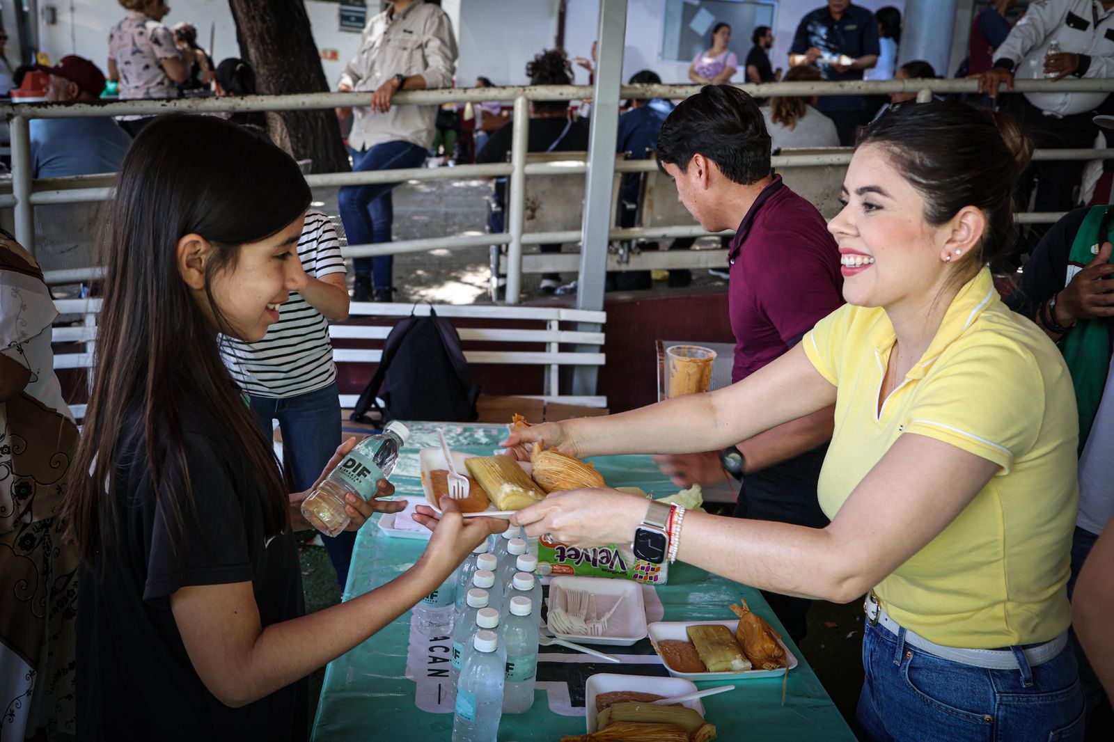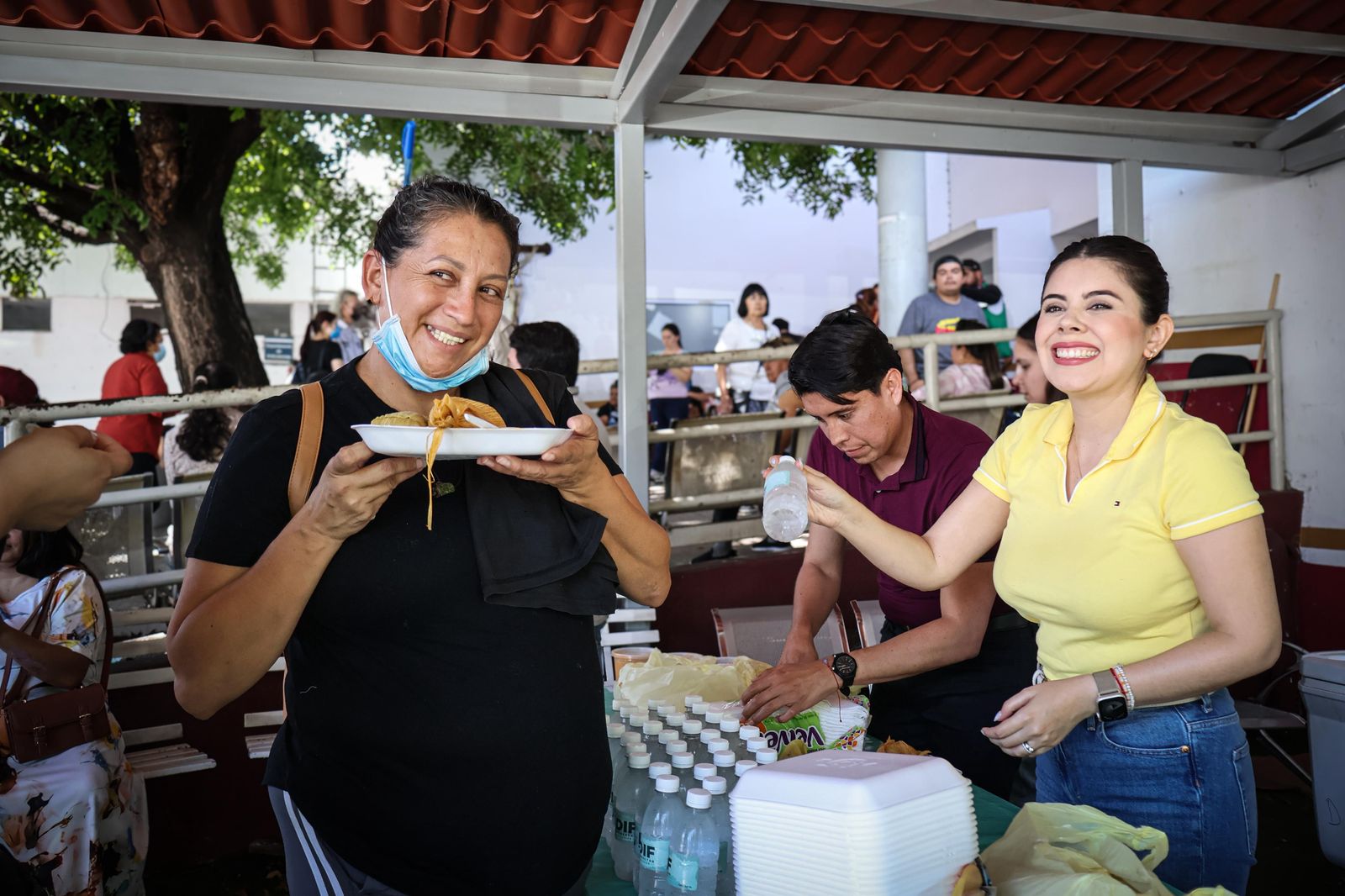 El menú consistió en tamales de elote y puerco, frijoles refritos y agua natural, beneficiando a más de 150 personas con un platillo completo, servido con calidad y calidez.