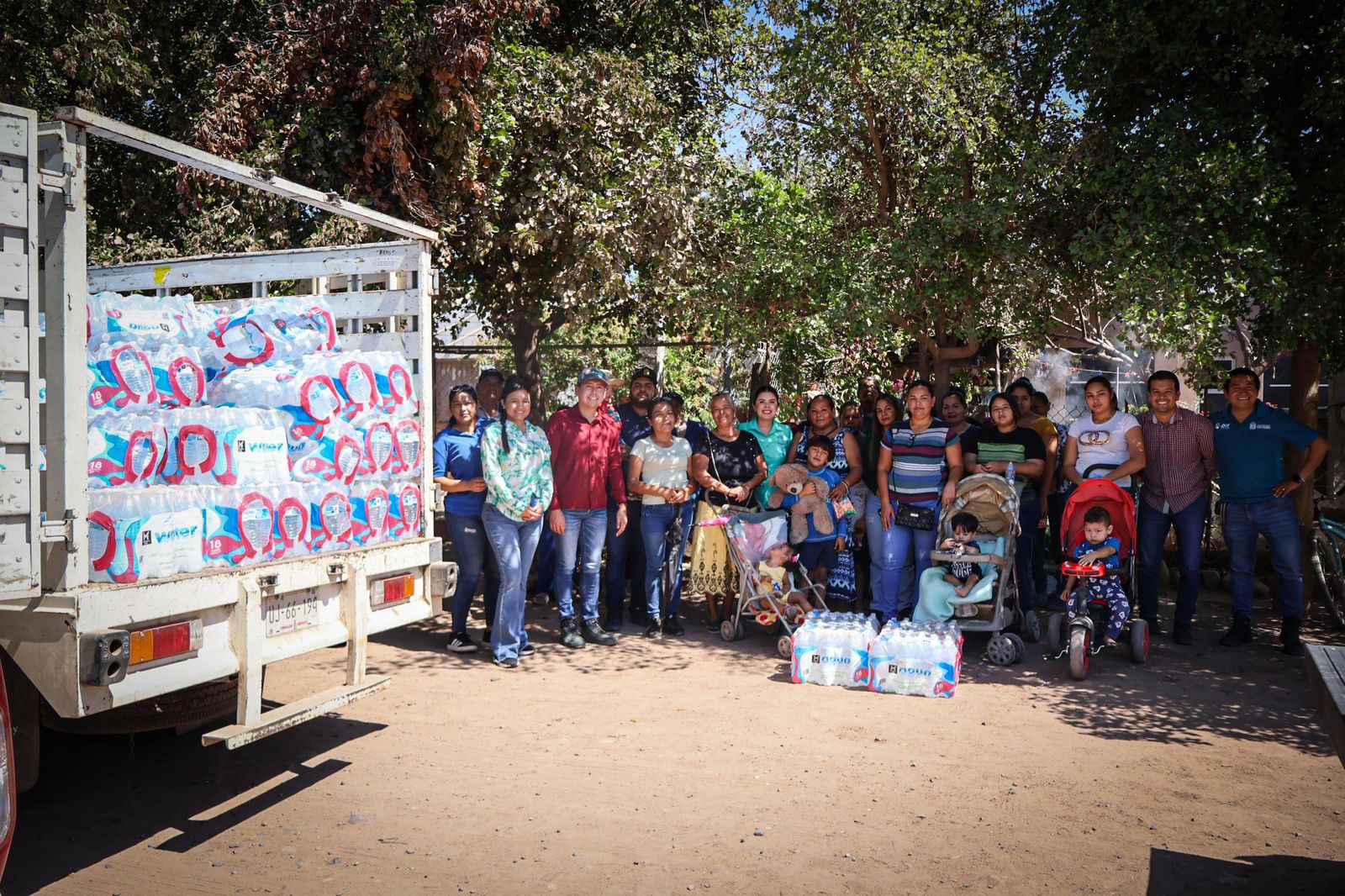 La distribución del vital líquido, llegó esta mañana a la sindicatura de Aguaruto, donde se distribuyeron 6 mil 200 litros de agua purificada entre familias de las comunidades: Las coloradas, San Miguel y San Manuel.