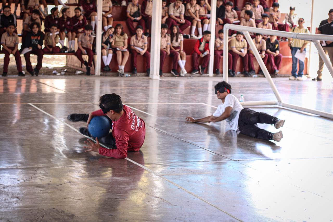 Como parte del cierre de la actividad, el equipo femenil de golbol realizó una demostración de este deporte adaptado, invitando a las y los estudiantes a participar con los ojos vendados, brindándoles una experiencia vivencial que fomenta la sensibilización y la comprensión hacia las personas con discapacidad visual.